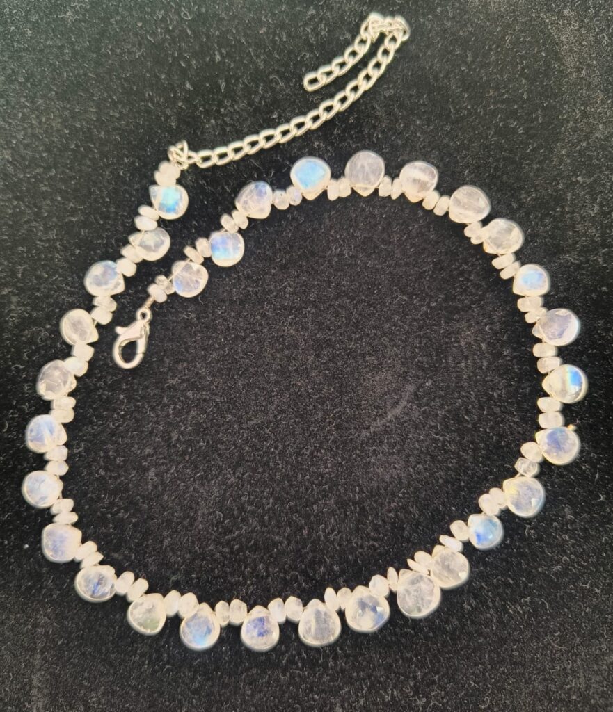 Beyond its aesthetic charm, Moonstone is often associated with intuition, emotional balance, and inner harmony. It is believed to enhance creativity, calm the mind, and support new beginnings, making it a popular choice in spiritual and healing jewelry.