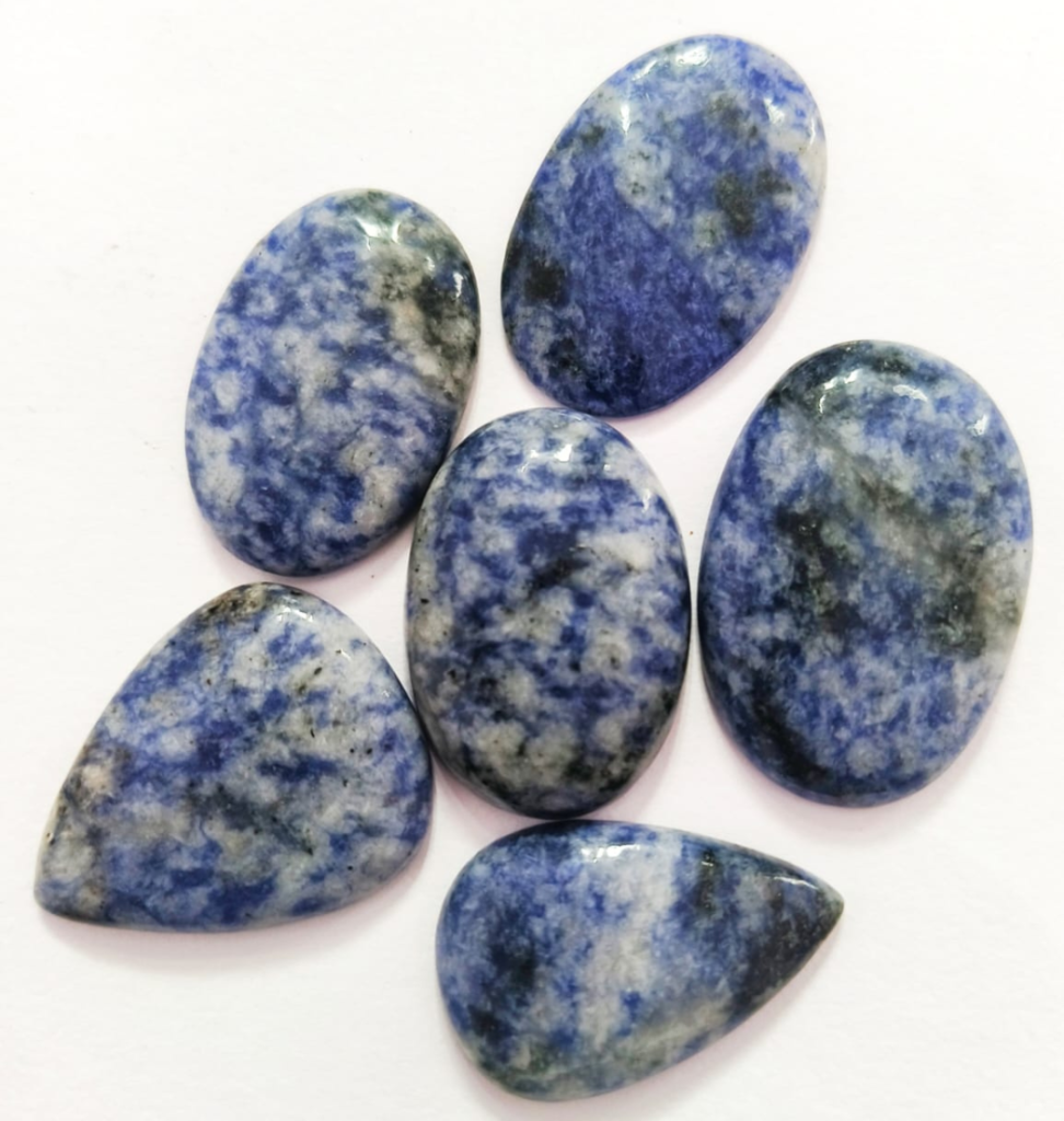 Sodalite Cabochon is a striking and elegant gemstone admired for its deep blue color accented with natural white veining and patterns. This unique combination creates a bold and sophisticated appearance, making each cabochon one of a kind and visually captivating. Its smooth, polished surface and rich luster enhance its beauty, especially when shaped into classic cabochons for refined and artistic jewelry designs.